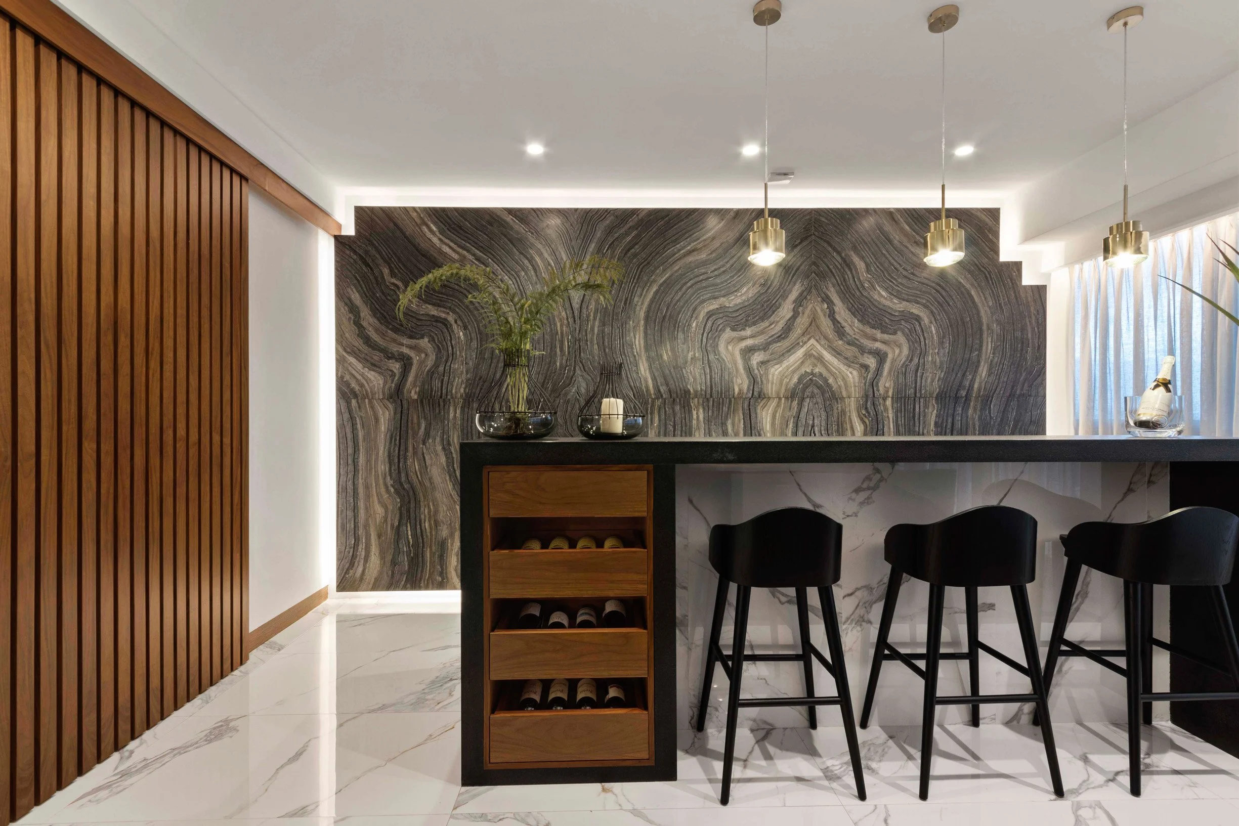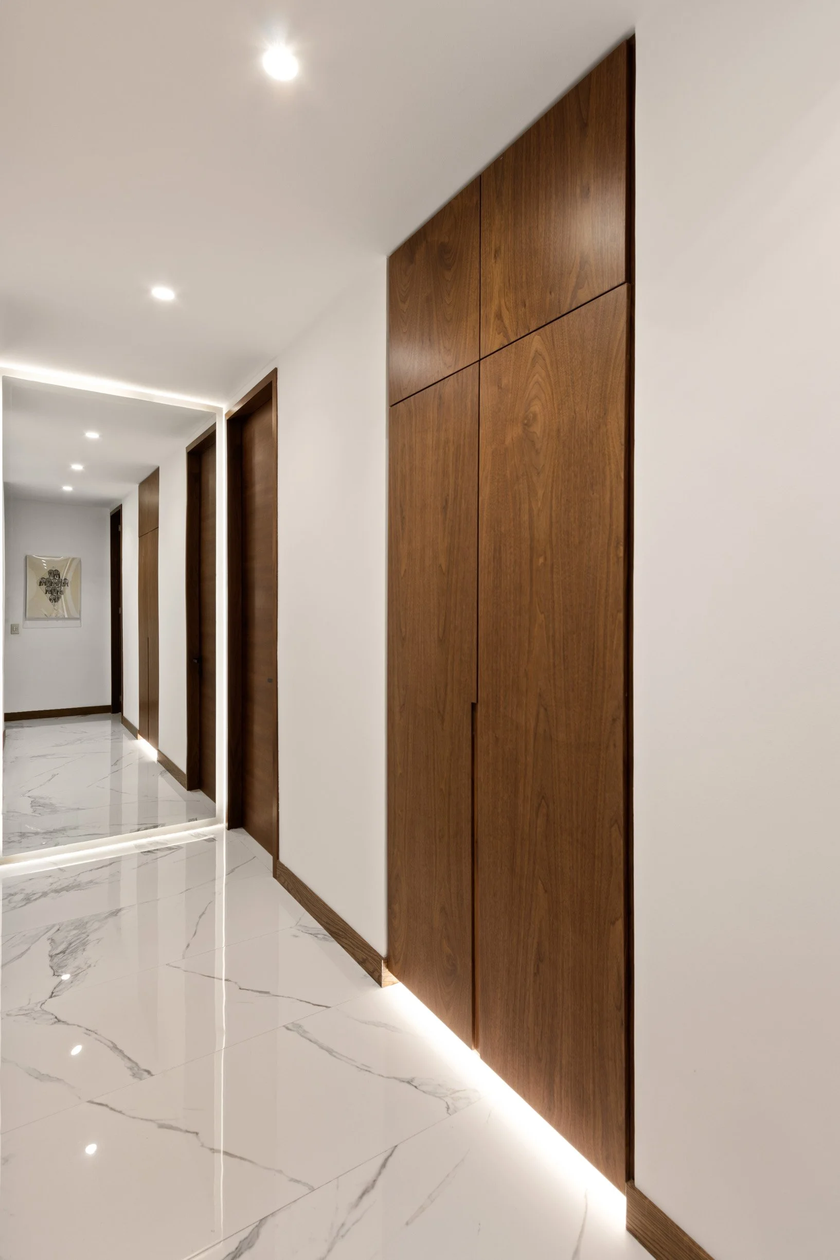 Para la paleta de materiales e iluminación se seleccionaron materiales en tonos acogedores con una cromática neutra, generando una atmósfera que destaca por su estética contemporánea y sofisticada, así como las piezas de mobiliario atemporal y confortables con toques originales.
